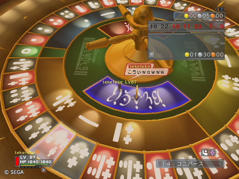 数回転後、少しでも損した分を取り戻そうと、残り5枚の内2枚を黒に賭けたんですが、